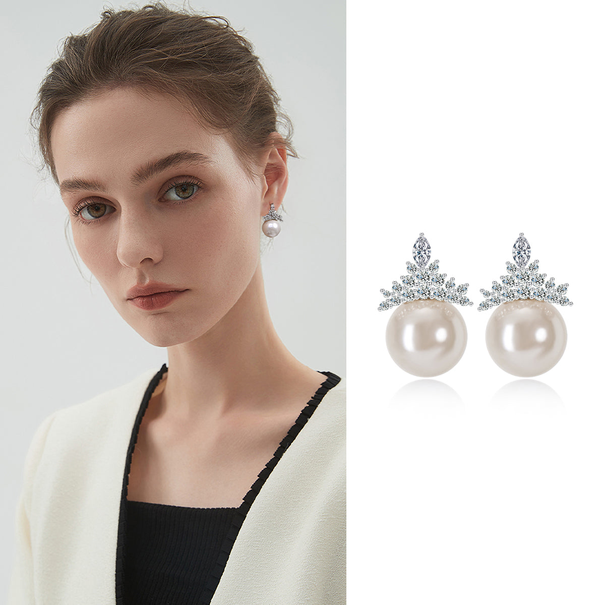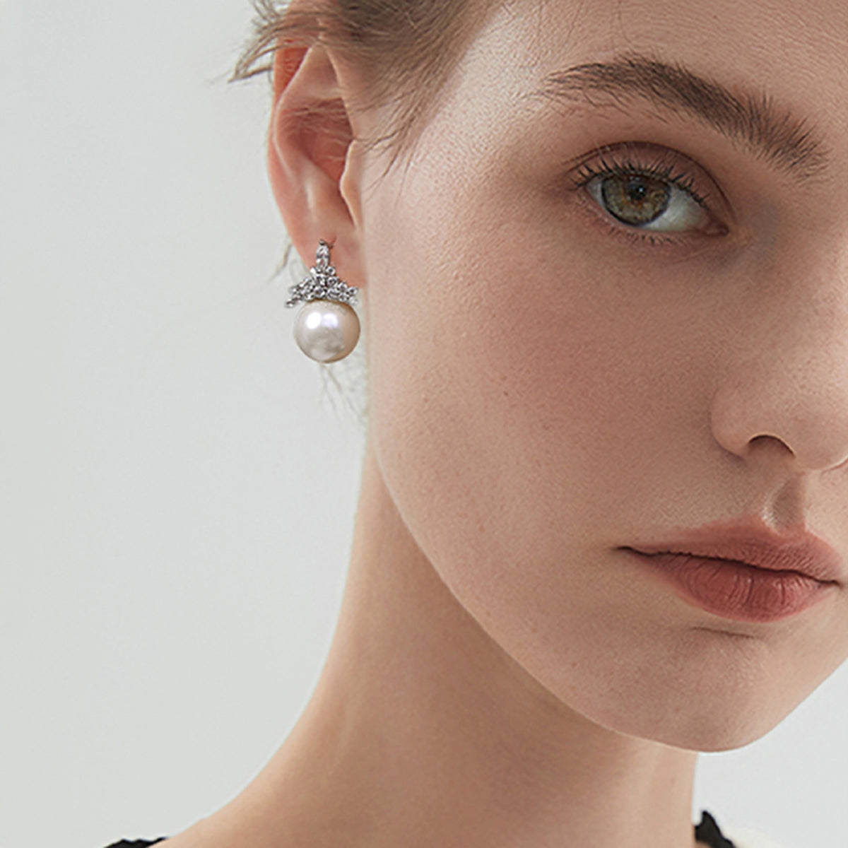 Radiant and regal, these Freshwater Pearl Drop Earrings are adorned with a sparkling crown of brilliant crystals atop a lustrous round pearl. Set in high-quality S925 sterling silver, their refined design exudes elegance and sophistication—perfect for bridal looks or elevated evening wear. The intricate crystal detailing enhances the pearl’s natural glow, making these earrings a timeless wedding pick and heirloom-worthy accessory.