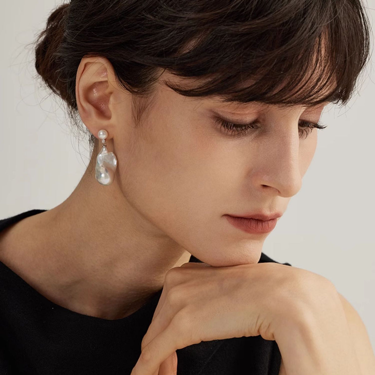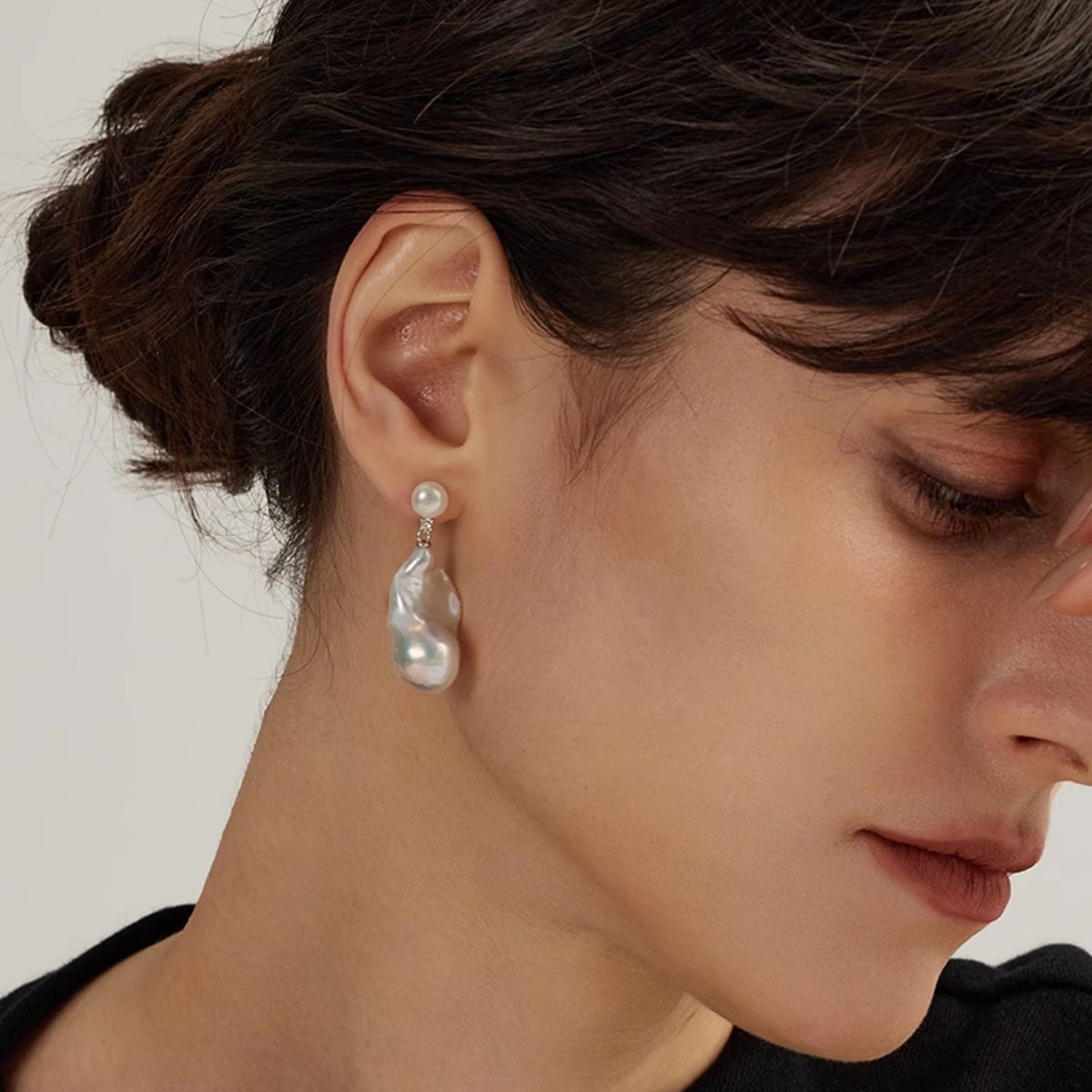 Organic elegance meets modern charm in these Baroque Freshwater Pearl Drop Earrings. Each piece showcases a unique, irregularly shaped pearl suspended beneath a smaller round pearl, creating a naturally striking silhouette. Set on S925 sterling silver posts for comfort and durability, these earrings embrace individuality and refined style—making them a standout wedding pick or a sophisticated everyday statement.