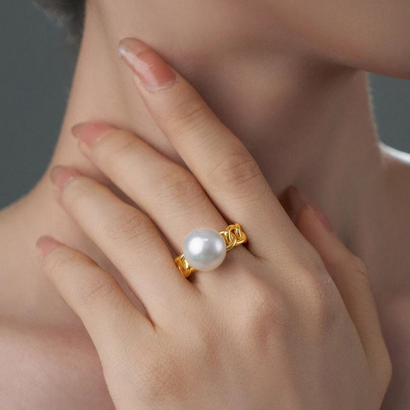 Bold meets elegant in this Chain Link Pearl Open Ring, where contemporary metalwork meets the timeless charm of a lustrous pearl. Featuring a chunky open band of silver links, each ring is crowned with a single radiant pearl that adds a refined contrast to the edgy chain design. Adjustable and eye-catching, it's a modern essential perfect for everyday glam or statement stacking.
